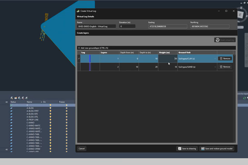 A caixa de diálogo também contém uma seção para adicionar camadas de solo, que exploraremos a seguir.