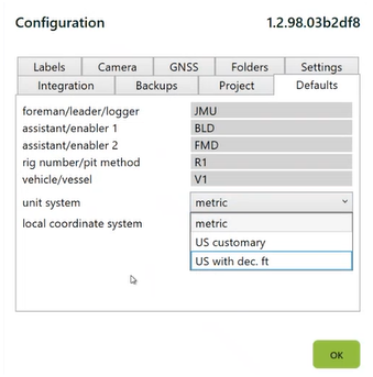 Varsayılanlar **sekmesi** menüsünde **Yapılandırma** veri girişi sırasında formların otomatik olarak doldurulmasını sağlayacak değerleri tanımlamanıza olanak tanır. Bu, zaman tasarrufu sağlar ve projeler arasında tutarlılığı garanti eder.