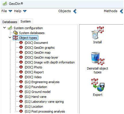 GeoDin uses *object types* to represent various standards for recording drilling data or general geodata.\
